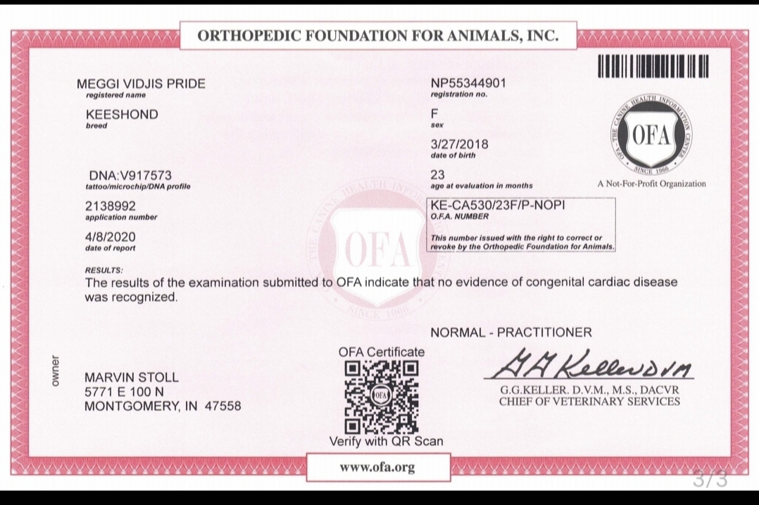 All Hocking Hills Keeshonds puppies are handled daily from birth to stimulate early neurological development. At 2, 4, 6, and 8 weeks, the puppies are dewormed. Then, at 3-4 weeks, I begin the weaning process, and they are started on potty and house training. All Keeshond puppies, if kept on a schedule, rarely have accidents. At 7-8 weeks, they are vet checked, microchipped, and vaccinated. Before going to their new homes, each puppy is given Simparica Trio for flea, tick, and heartworm prevention. Additionally, all puppies receive a new puppy pack, which includes essential information, health records, limited AKC registration, a health guarantee, a puppy contract, a toy, treats, a bone, poo bags, and something that carries their mother's scent. Bringing a new Hocking Hills Keeshonds puppy home is extremely exciting but can also be stressful, so I am available for any questions. With that being said, all Keeshond puppies are priced at $2300, regardless of sex, with a $200 deposit that is deducted from the total.